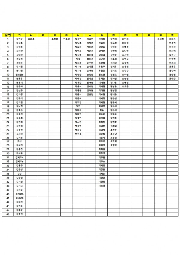 8월 10일(일) 휴일 자습 명단