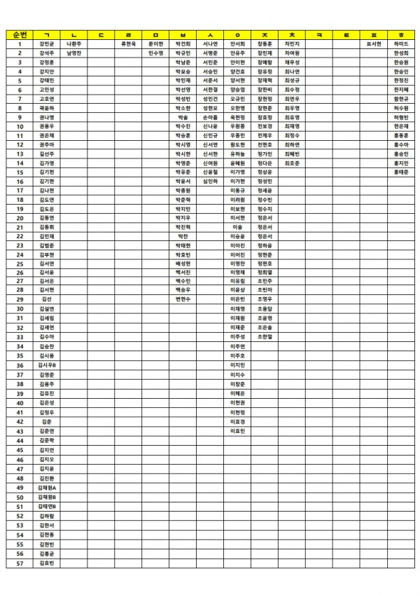 8월 15일(금) 공휴일 자습 명단