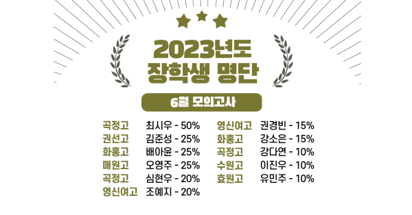 2023 고1 6월 모의고사 장학생 명단