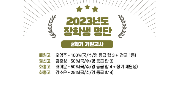 2023 고1 2학기 기말고사 장학생 명단