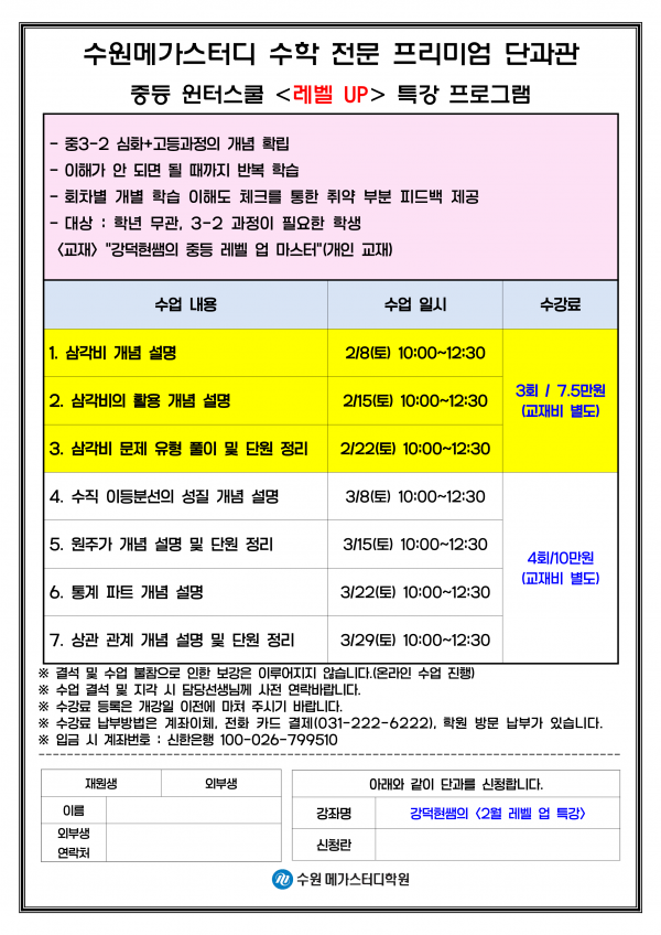 중등 윈터스쿨 <레벨 업> 프로그램 안내