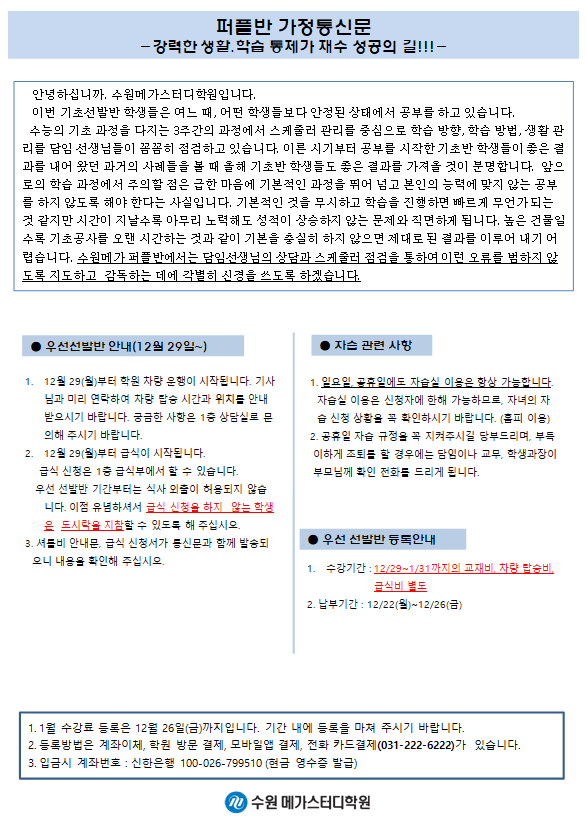 재수 [퍼플] 12월 가정통신문