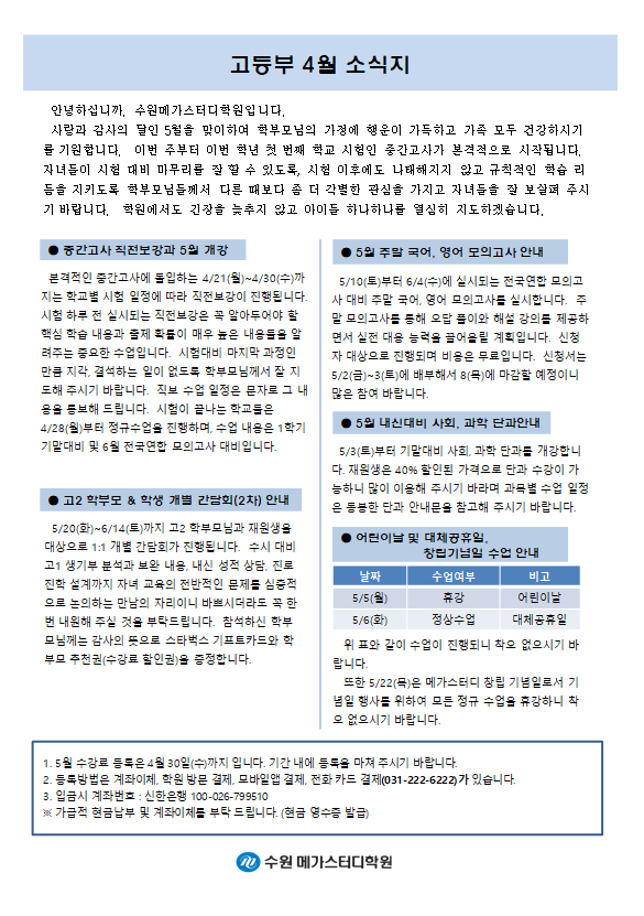 고등 [고등] 4월 가정통신문