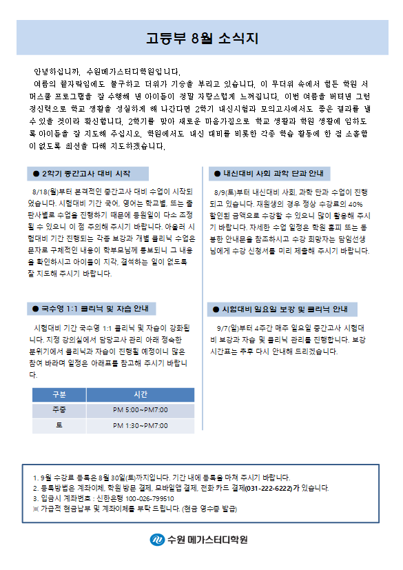 고등 [고등] 8월 가정통신문