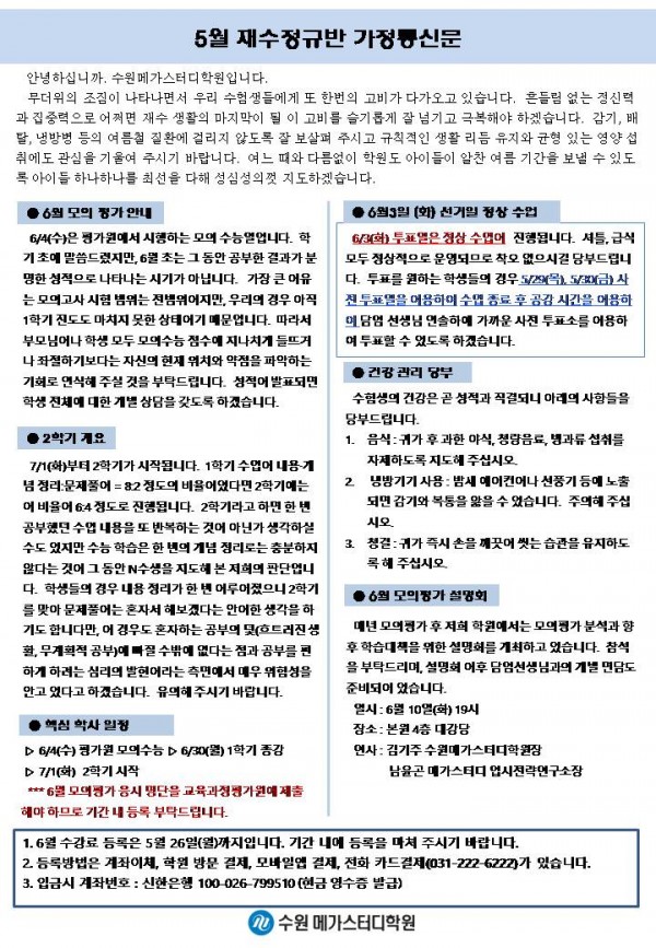 재수 [재정] 5월 가정통신문