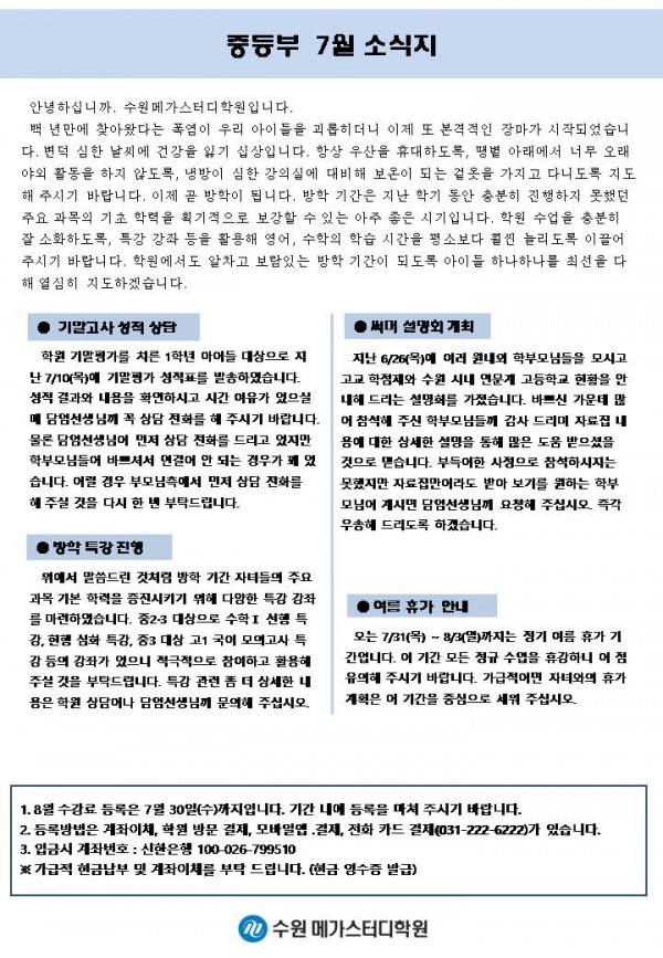 중등 [중등] 7월 가정통신문