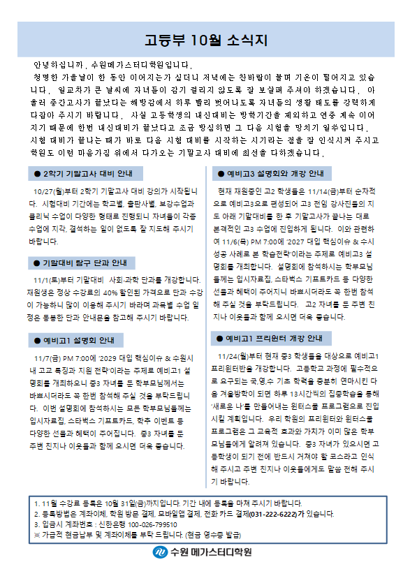고등 [고등] 10월 가정통신문