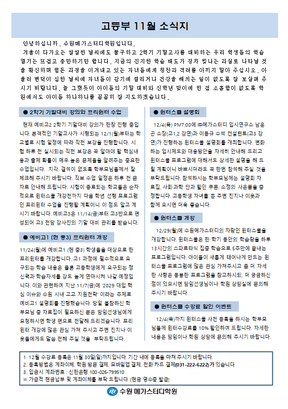 고등 [고등] 11월 가정통신문