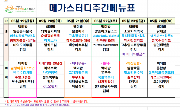 5월 3주차 식단표(5/19~5/24)